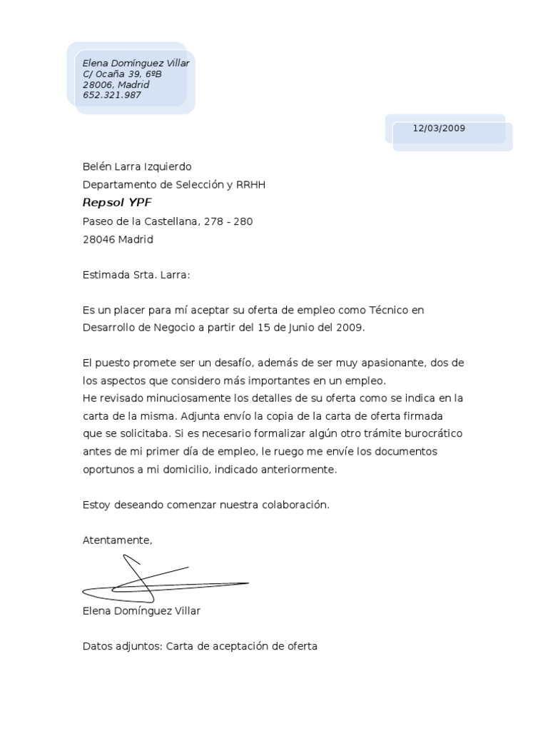Ejemplo De Carta De Aceptacion Oferta via www.scribd.com